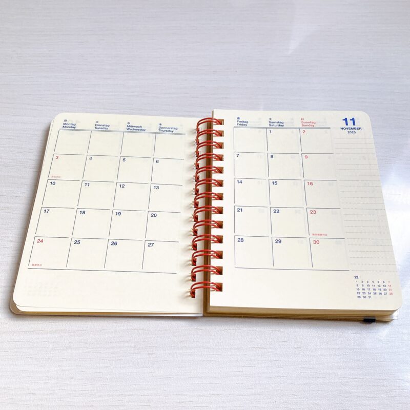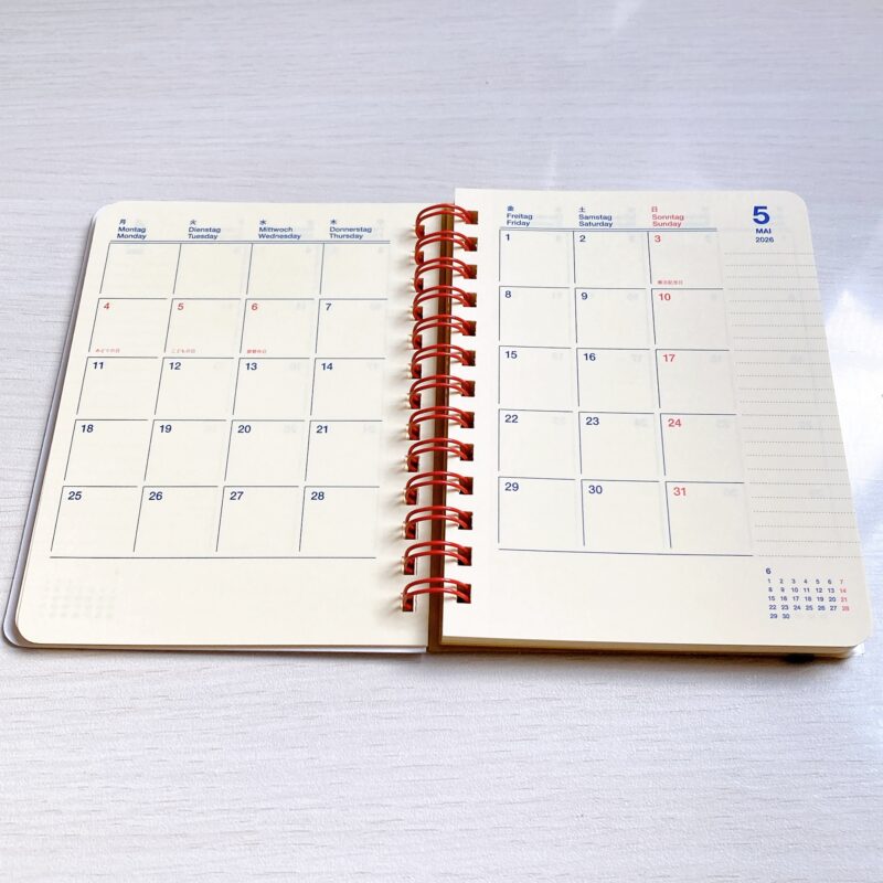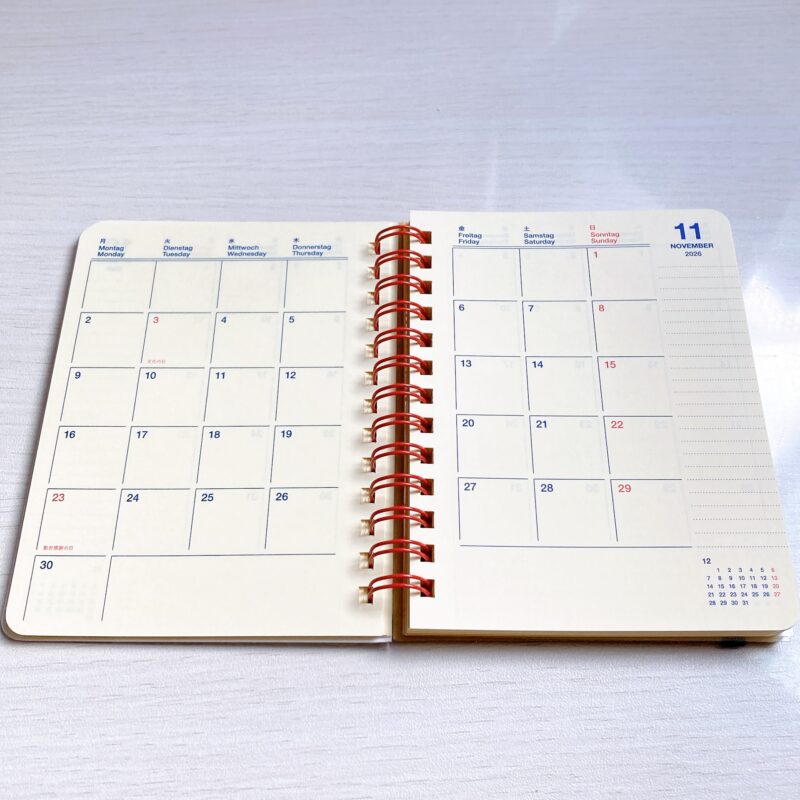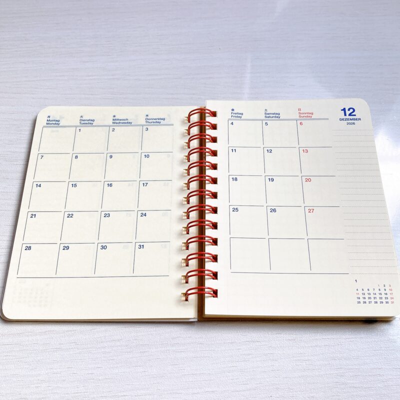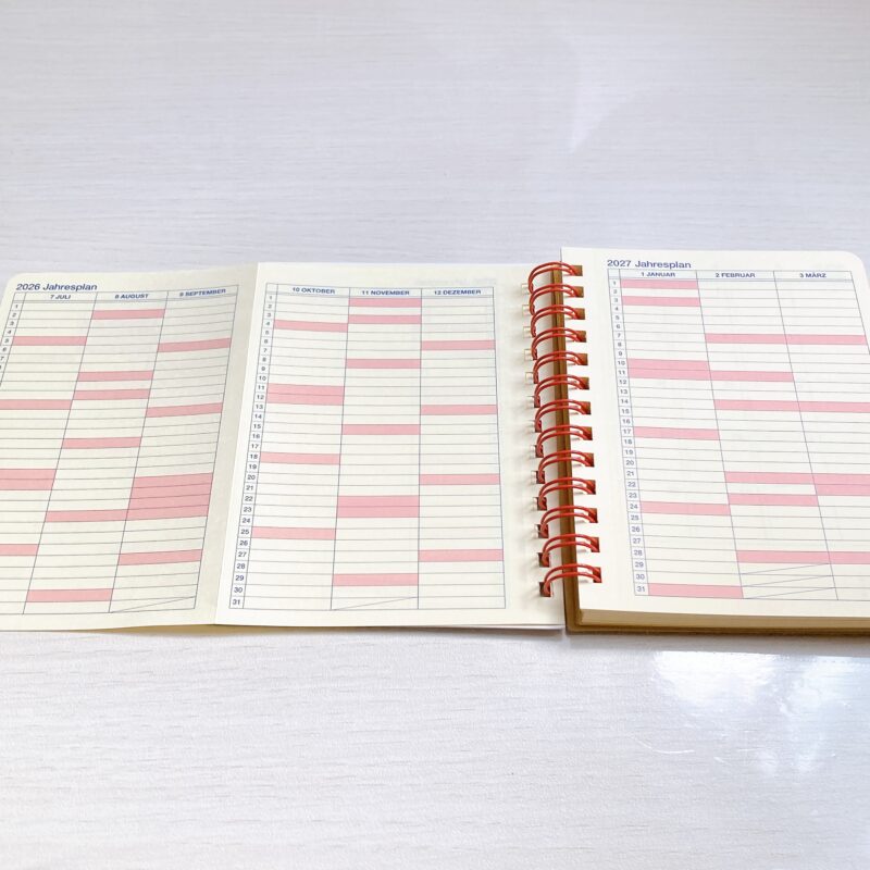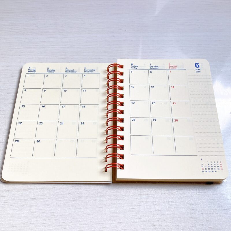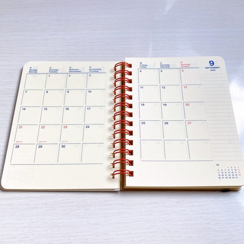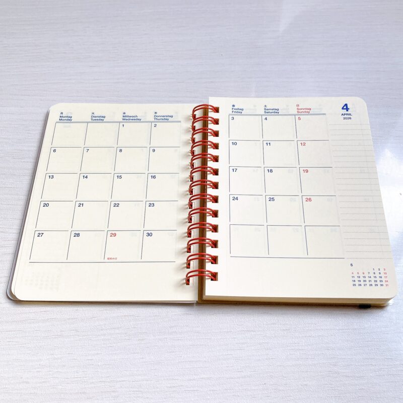 リングのバネ色が、赤銅色寄りのピンクで、表紙と合ってます!