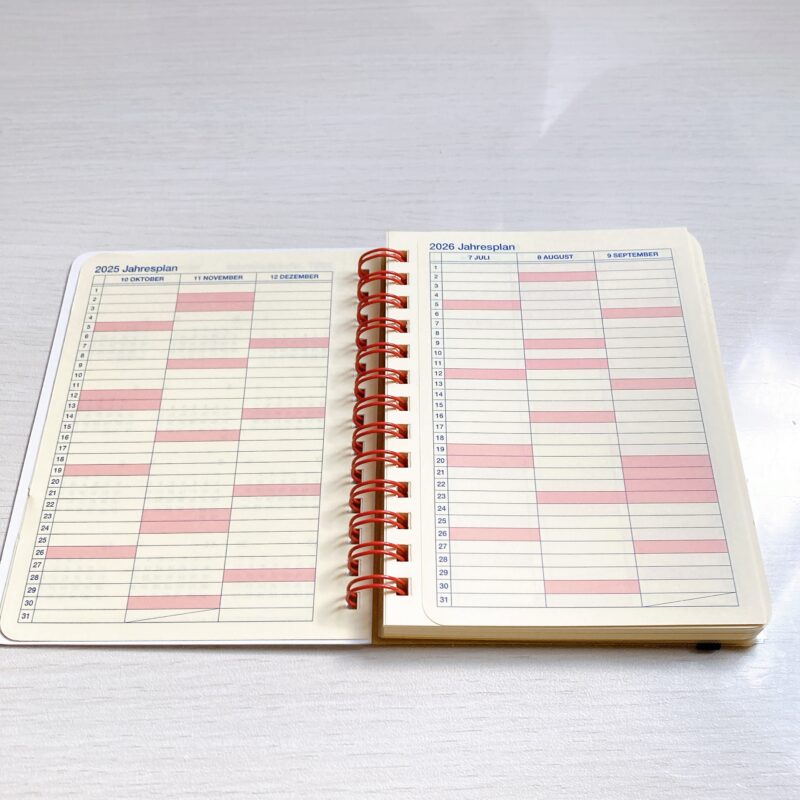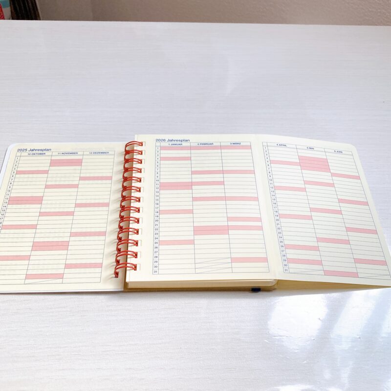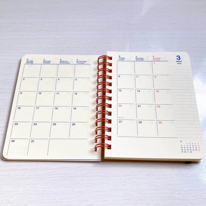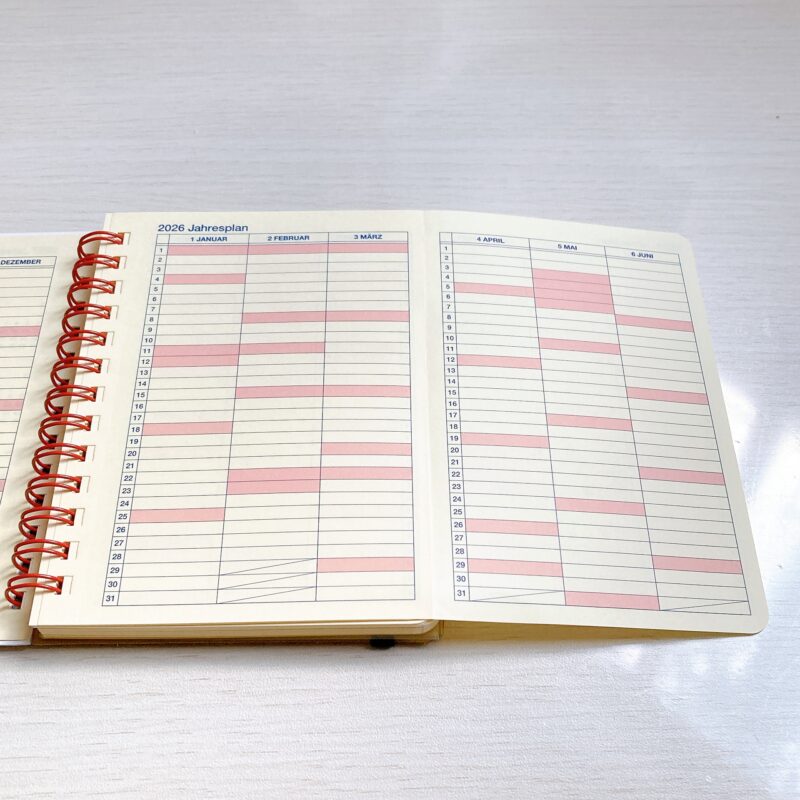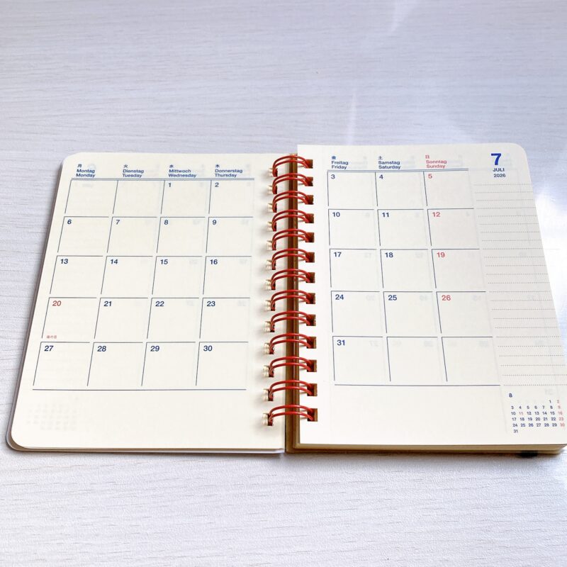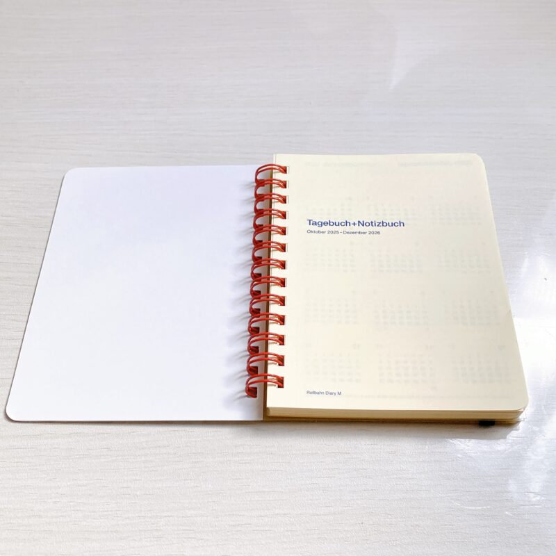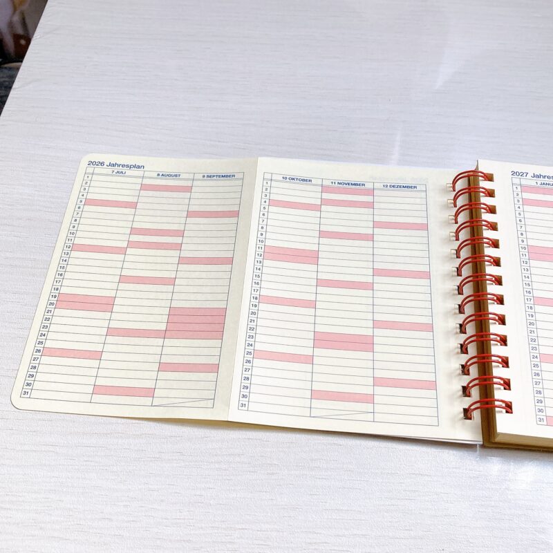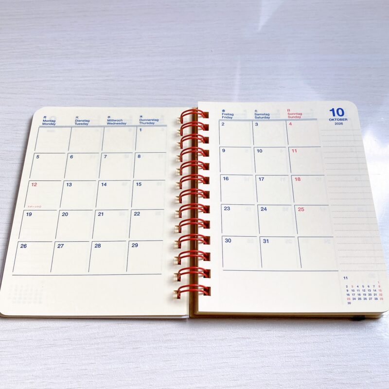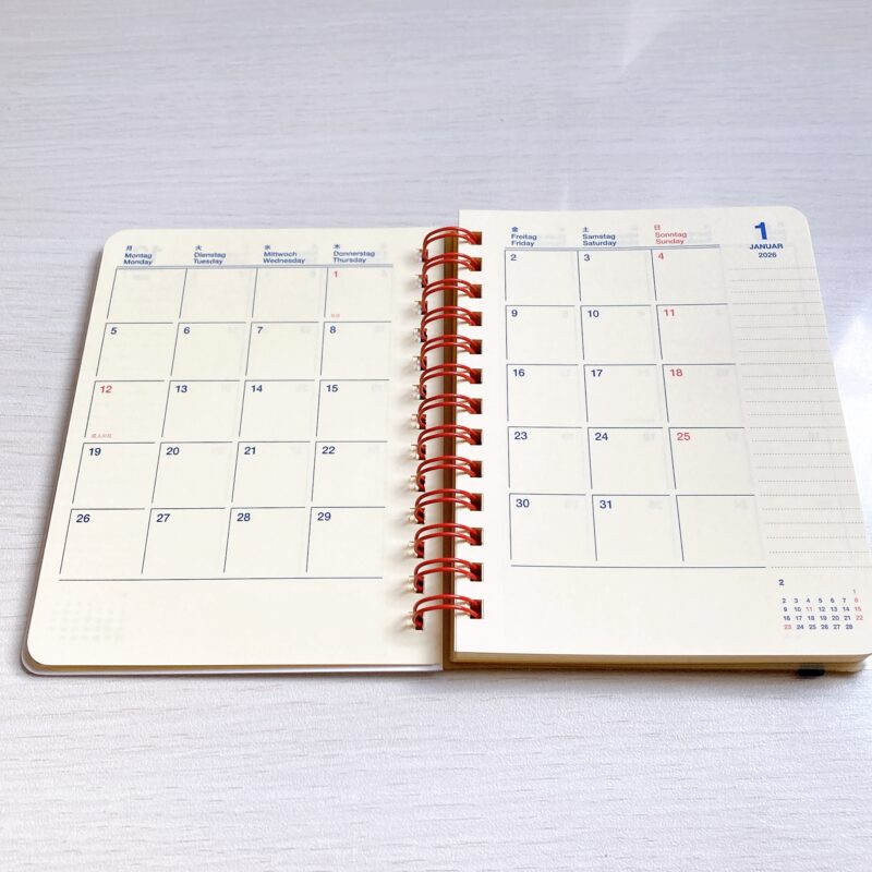 リングのバネ色が、赤銅色寄りのピンクで、表紙と合ってます!