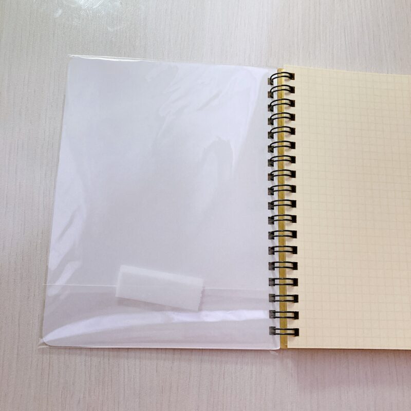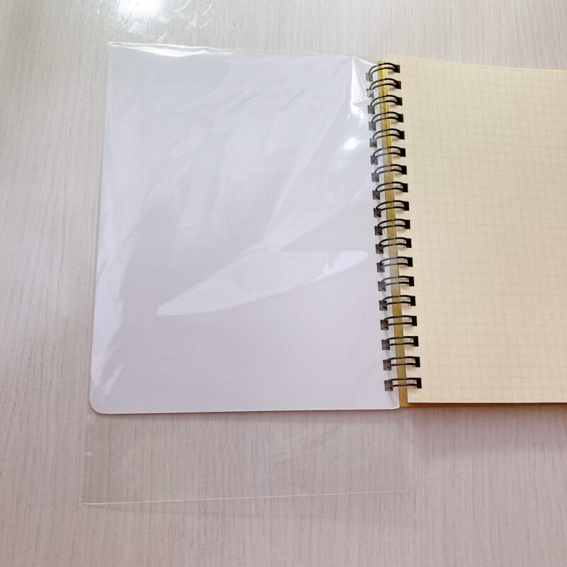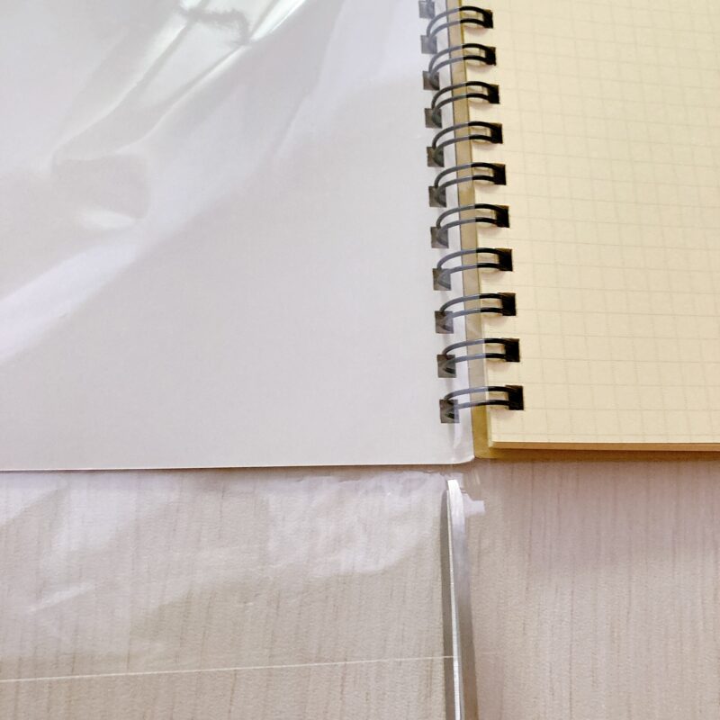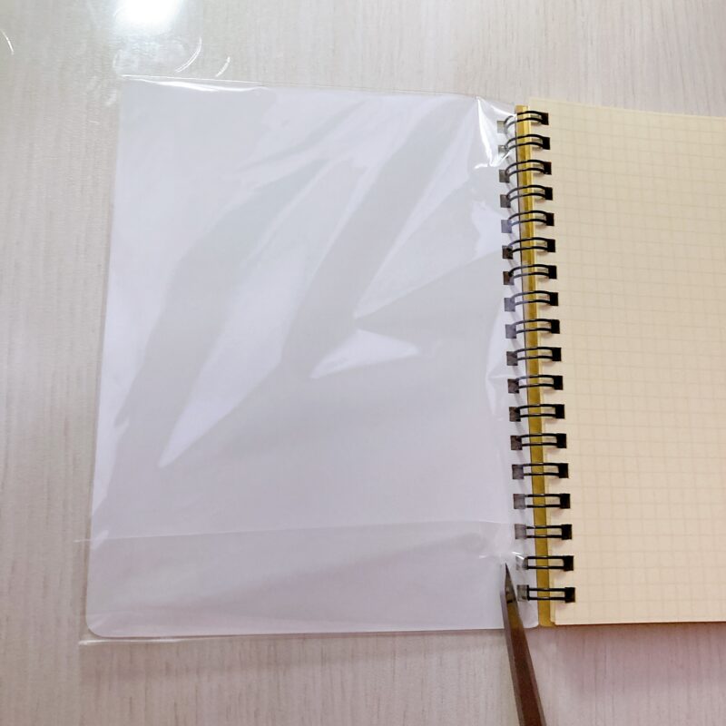 メルカリなどの発送用に買っておいた、A4サイズくらいのビニールカバーがありましたので、おおまかなサイズでカットしました。
